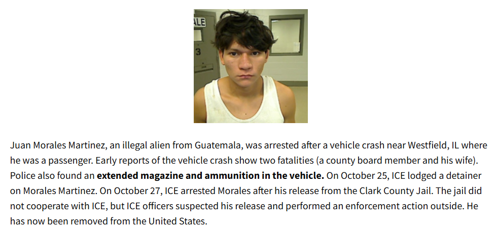 Illinois’ failure to honor ICE detainers has resulted in the release of 1,768 criminal illegal aliens since January 20. The crimes of these aliens include 5 homicides, 141 assaults, 23 burglaries, 4 robberies, 24 dangerous drugs offenses, 15 weapons offenses, and 10 sexual predatory offenses.